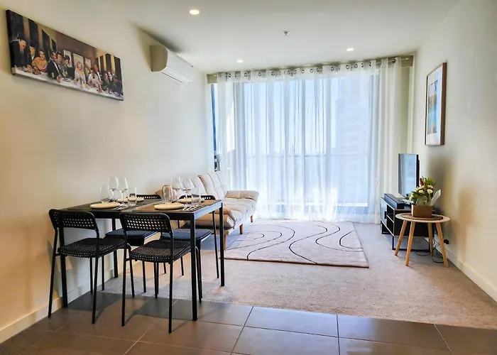 Modern 2-Bedrooms Apartment With Parking ist ein stilvolles Refugium im Herzen von Melbourne, das sowohl Komfort als auch Eleganz ausstrahlt. Ideal für Reisende, die das pulsierende Leben der Stadt erleben möchten, bietet dieses Apartment die perfekte Kombination aus modernem Design und praktischen Annehmlichkeiten.